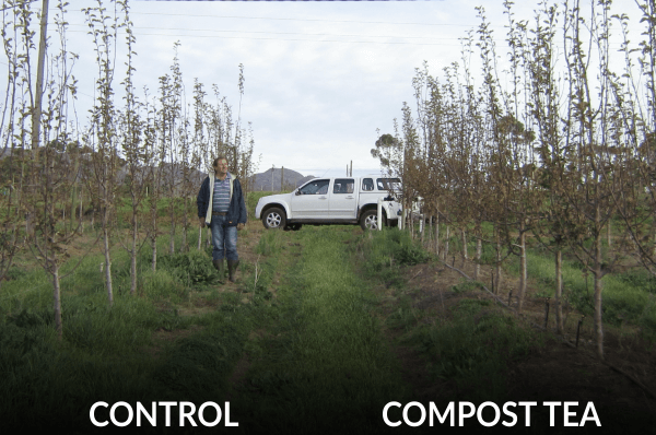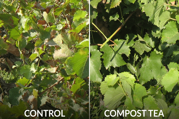 Study comparisons between CONTROL applications (pictured left) and COMPOST TEA applications (pictured right) – click to enlarge